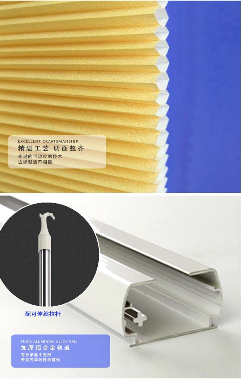 蜂巢簾又名風琴簾,靈感來源與世界上最完美的建筑--蜂巢的設計,獨特的蜂窩結構,使空氣存儲于中空層,令室內保持恒溫,隔熱保暖。